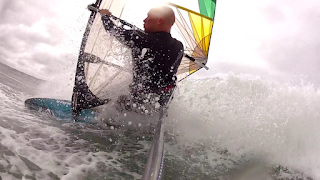 After the lunch the sun came out and the waves really picked up. Besides getting dragged over some large boulders the conditions rocked. I caught a big set wave - logo+. Got two lengthy waves with up to eight turns. Such a good afternoon! I liked my new used Aeron boom too.